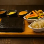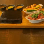 Nuestras piedras se acompañan de vegetales asados, salsas de ajo, mostaza y pimientas