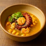 Róbalo del pacifico marinado en “leche de tigre de coco”, ají rocoto, Cebolla roja, cilantro y maíz.